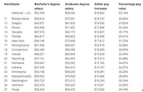 学历也是影响工资的一个重要因素。一般来说,学历越高,工资水平也越高。以2021年的数据为例,拥有博士学位的人平均年薪为$102,910,而高中毕业的人平均年薪仅为$39,880。这也就意味着,如果你想要提高自己的工资水平,提升学历是一个不错的选择。